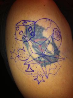 PS: es kommt nur sehr selten vor, dass ein Kunde exact nach Vorlage tätowiert werden will. Über 90% der Vorlagen werden individuell auf den Kunden angepasst und abgewandelt, sodaß JEDER sein ganz persönliches Tattoo-Unikat bekommt. Wie auch immer...die Vorlage kommt anschließend in den Müll. Keine Vorlage wird zwei- oder mehrmals verwendet, schließlich sind genügend Vorlagen vorhanden *lächel* ( ca.3000 in Ordnern und ca. 8000 auf PC)